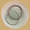 The bracelets are adorned with floral and leaf motifs in a variety of subtle tones. The first features a creamy pink background with flowers in shades of burgundy and mauve, while the second boasts a white background with blue and green floral motifs.