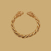 Discover this magnificent open bangle bracelet in gilded bronze, directly inspired by ancient Scythian craftsmanship. Its twisted body evokes ancestral know-how and gives the piece a unique character.