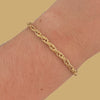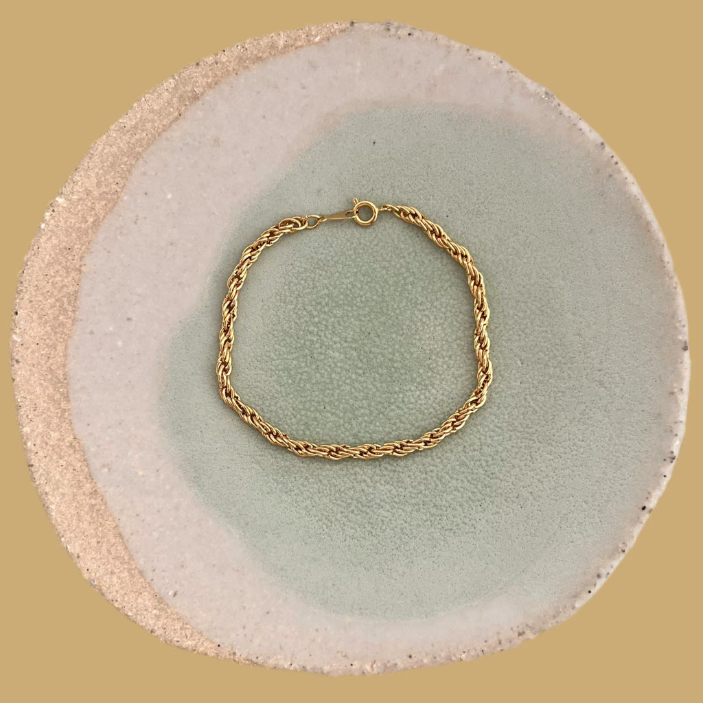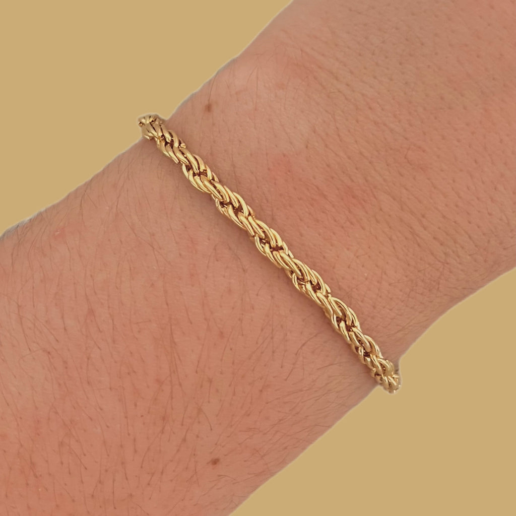 This gold-plated bracelet features a twisted chain, often called a "rope chain." This style is a classic in jewelry.